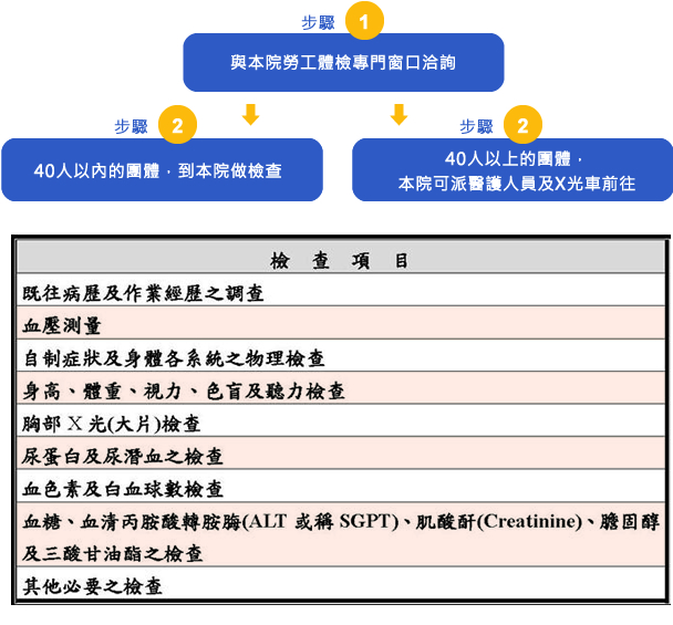 勞工體檢洽詢專線:(02)2968-5661 分機115/111 , 0930-730-938